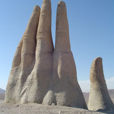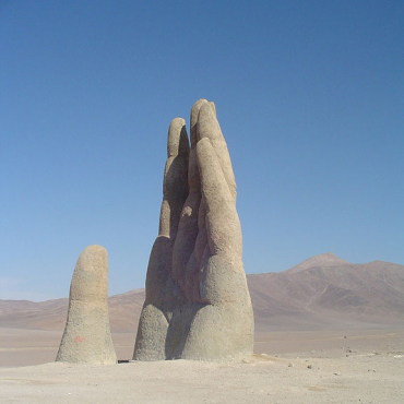 The scorched moonscape of Atacama stretches for hundreds of miles on both sides of the Pan-American Highway, undisturbed by any sign of human activity. About 75km south of the town of Antofagasta, its monotony is shattered by a sight even more alien then the desert itself, and yet undoubtedly human: an 11-meter-tall hand protruding out of the sand.