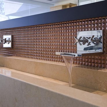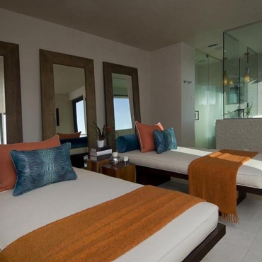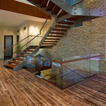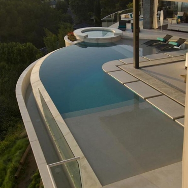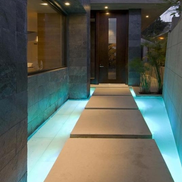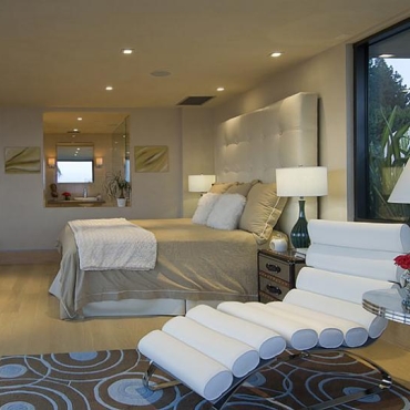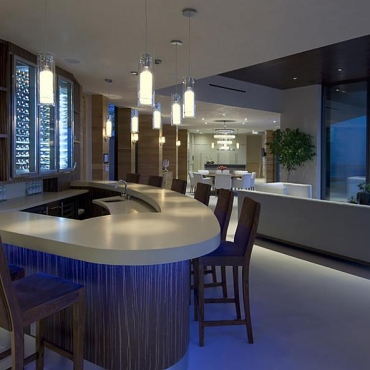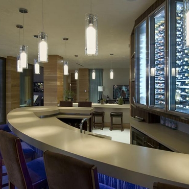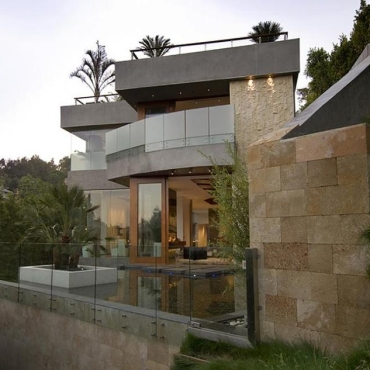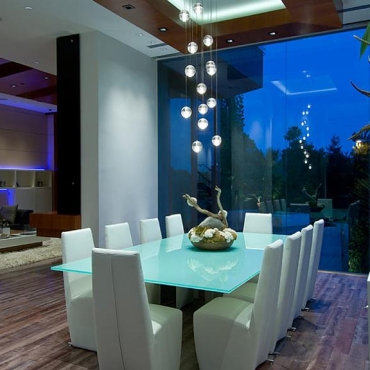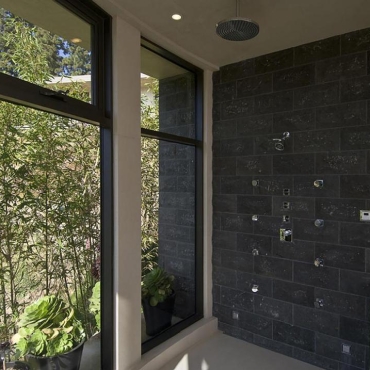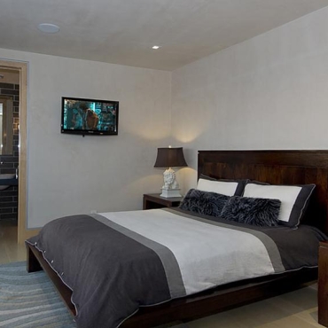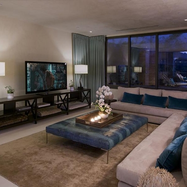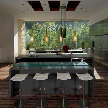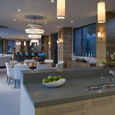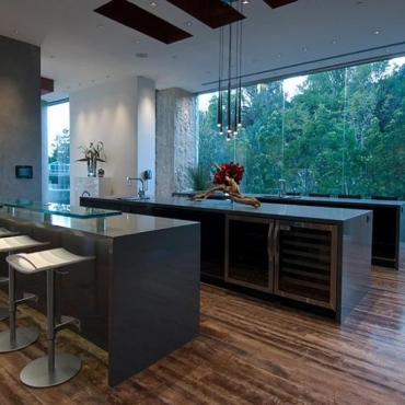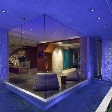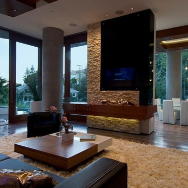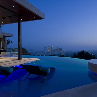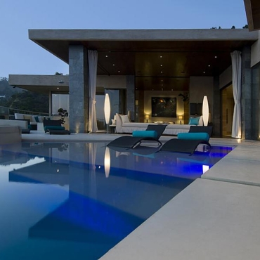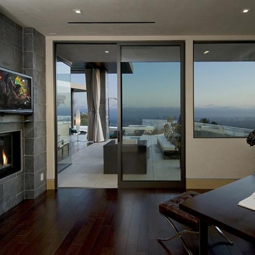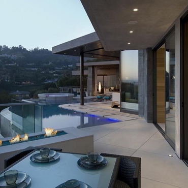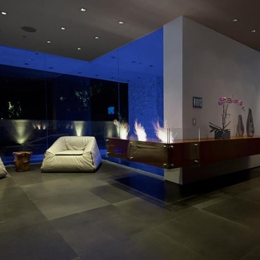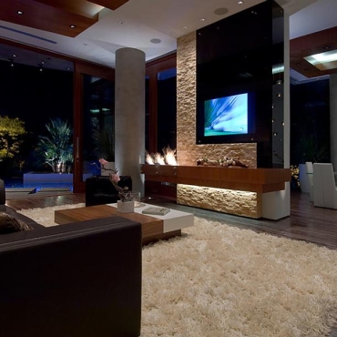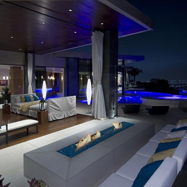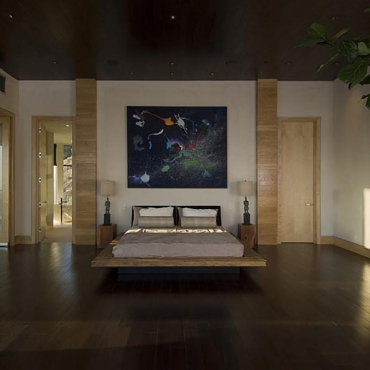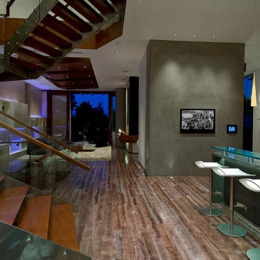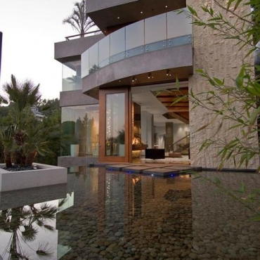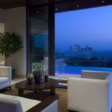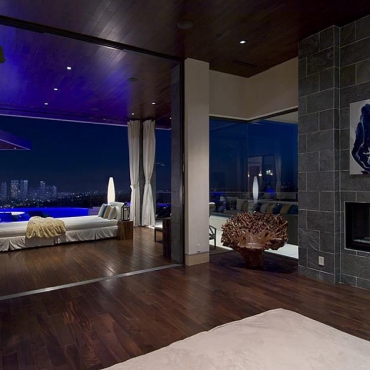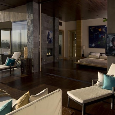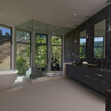 The house is a modern design in the Pacific lodge style, with classic features such as a large private library with a dome shaped roof and oculus. The house also features an estate-wide server system, and heated floors and driveways. Guests wear pins that upon entrance of a room automatically adjust temperature, music, and lighting based on the guest’s preferences, according to the narration in the virtual tour below.