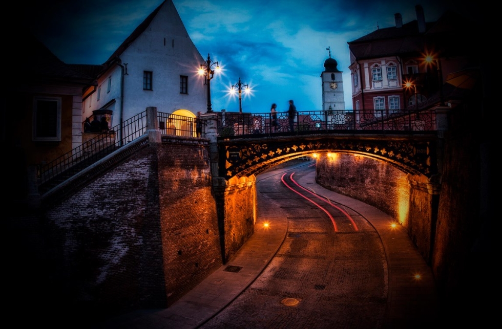 Liar’s Bridge was the first bridge in Romania to have been cast in iron, in 1859. To the right of the bridge is another symbol of the city, The House of the Arts, an 14th century arched building formerly belonging to the Butchers’ Guild. On the left side of the bridge is the Luxemburg House, a Baroque four-storey building.