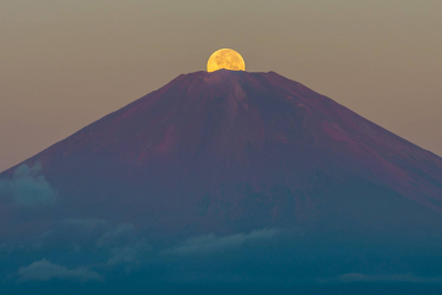 Amazing moon over Mount Fuji, Japan