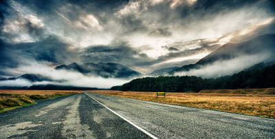 Eglinton Valley road in Fiordland National Park, Southland, New Zealand