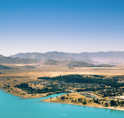 Rural road in Mackenzie Country near Lake Tekapo, Canterbury, New Zealand