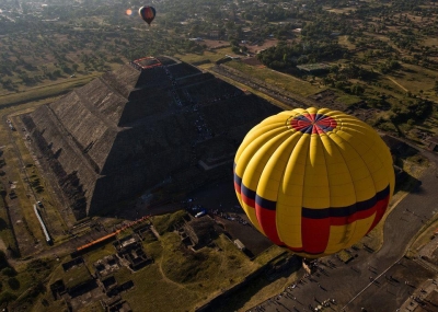 Hot air balloon festival over the Pyramid of the Sun, Mexico